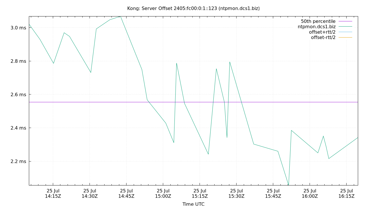 | Server Offset 2606:4700:f1::123 (time.cloudflare.com) | -1.789 | -0.780 | -0.394 | 0.740 | 1.900 | 2.051 | 2.380 | 2.294 | 2.831 | 0.887 | 0.769 | ms | -0.0724 | 1.382 | ||